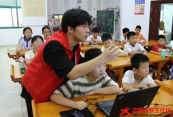 我是半岛网页版登入界面人文学部中文2407班涂景皓,暑假回来后,报名参加“情注艾都”志愿服务队,进驻漕河镇枫树林社区,开启为期30天的“七彩假期”托管班项目。