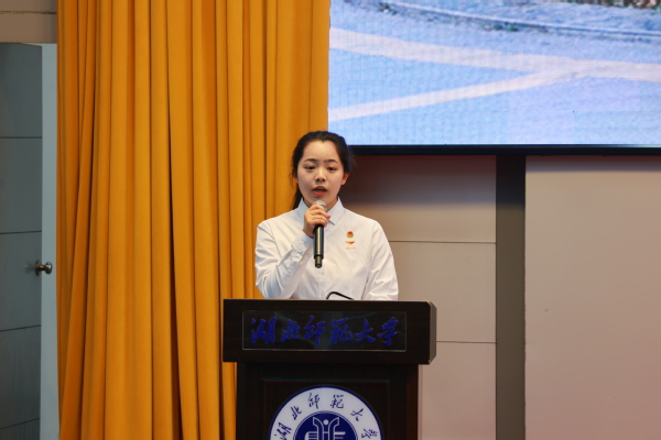 学生代表余佳佳,青年代表陈新锐、胡媛媛做示范演讲。余佳佳以“矿石里的青春密码”为题,分享了从自我探索到自我引领的成长历程;陈新锐以“一分钟”为主线,讲述消防员严苛训练为救援争取分秒,守护生命的动人故事;胡媛媛通过自身从教经历,展现了教育工作者扎根基层、传承师道的精神品格。
