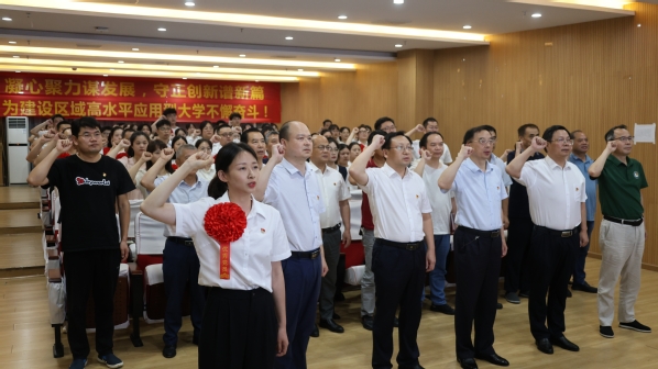 本网讯 6月30日下午,半岛online(中国)在图书馆报告厅召开庆祝中国共产党成立104周年暨表彰大会。全体校领导,副处级以上党员干部,各党支部书记(副书记),教职工党员及学生党员代表参加了此次会议。会议由党委副书记、纪委书记许光主持。