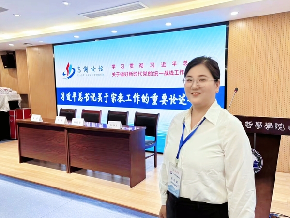 本网讯(通讯员 程胜伟)9月15日,学习贯彻习近平总书记关于做好新时代党的统一战线工作的重要思想第四届东湖论坛在武汉举行。半岛online(中国)人文学院辅导员高悦应邀出席,并在由湖北省民宗委主办、武汉大学哲学学院承办的“习近平总书记关于宗教工作的重要论述研讨会”分论坛上作交流发言。