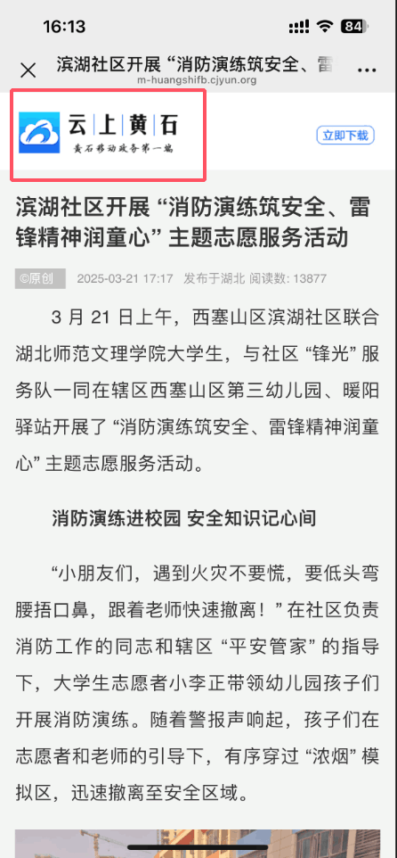此次活动不仅增强了孩子们的消防安全意识,也让雷锋精神在志愿服务中得到传承与弘扬。同时,活动获云上黄石、湖北日报客户端报道,彰显了社会各界对校社合作的认可与支持。未来,经济与管理学部将继续深化校社共建,整合多方资源,打造更完善的志愿服务体系!