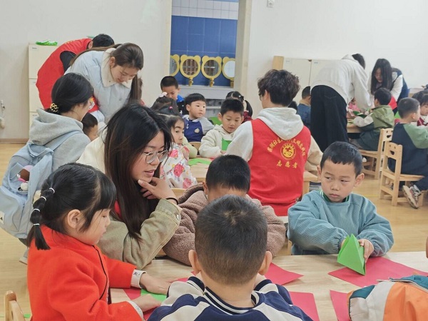 活动中,党支部志愿者带领孩子们开展消防演练,有序撤离“浓烟”模拟区。演练后耐心解答孩子们关于消防的疑问,传播安全知识。在幼儿园活动室,志愿者教孩子们用彩纸折雷锋帽,传播雷锋精神。此外,志愿者通过讲雷锋故事,生动诠释助人为乐、爱岗敬业的时代内涵。实践环节中,志愿者系统讲解雷锋帽的象征意义与制作工艺,指导30余名幼儿完成雷锋帽手工艺品制作。最后,志愿者在暖阳驿站开展卫生清扫,为行动不便的老人提供切实帮助,传递温暖与关怀。