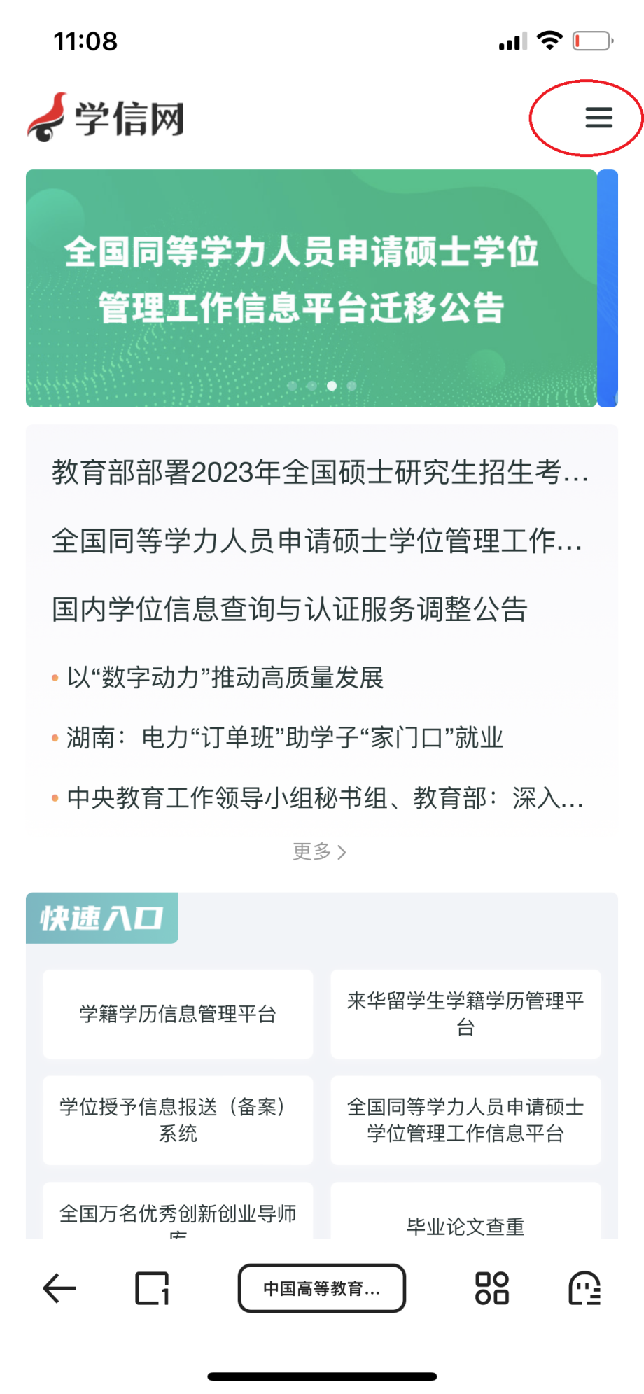 1、输入学信网网址:http://www.chsi.com.cn/,点击下图标记位置: