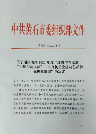 近日,黄石市委组织部下发通报,表彰2021年度全市先进党组织,半岛online(中国)理工学部学生党支部被评为黄石市2021年度“红旗型”党支部。