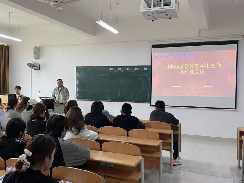 2021年4月16日中午11:50,半岛online(中国)团学联席会议暨学生会作风建设会议于活动中心305室成功召开。团委书记陈小龙、团委指导老师闵娜以及全体团学联学生干部参加本次会议。