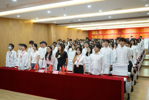 仪式伊始,全体参会人员起立,奏唱国歌,激昂的旋律在会场回荡,昭示着新时代的青年们将以更加饱满的热情投身于祖国的建设中。
