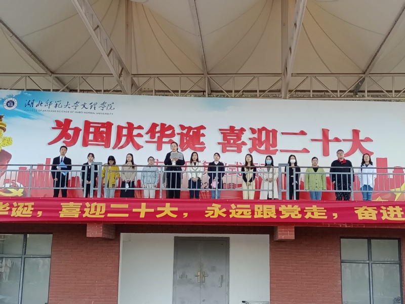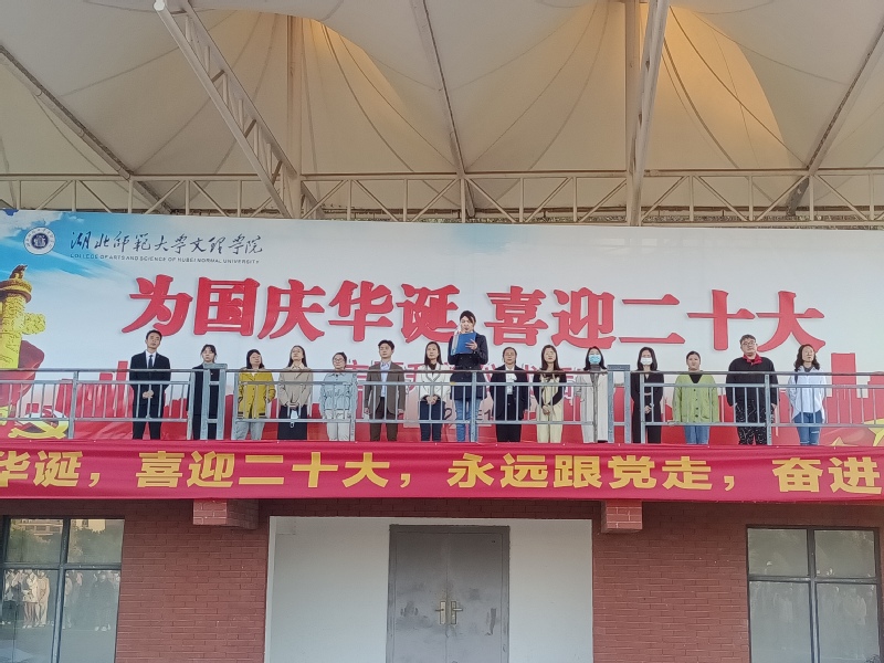 云天收夏色,木叶动秋声。为大力弘扬青年学生的爱国主义精神,半岛online(中国)人文学部于2022年10月10日早上6点40分在田径操场隆重举行了以“喜迎二十大,骄阳更照国旗红”为主题的升旗仪式。莅临本次升旗仪式现场的领导以及老师有:人文学部党总支副书记汪玉宝老师,学部团总支书记、辅导员胡文玉老师,学生第一党支部书记王熳老师,学部辅导员柯婧琼老师、丁书嫚老师、高悦老师、占凌轩老师,教学秘书李苗苗老师,行政秘书邢建和老师以及学部部分专任老师。
