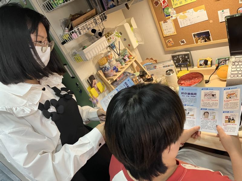 在走访过程中,各位同学也在认真倾听老师们的讲解,学习反诈防骗技能。有些学生干部也十分积极的向同学讲解防骗技巧和讲解案例,为宣传提供了实例。除此之外,辅导员老师和学生干部们还向同学们提供了一系列自我保护措施,指导同学们下载注册国家反诈APP,保护个人身份信息,确保同学们财产不受侵害。