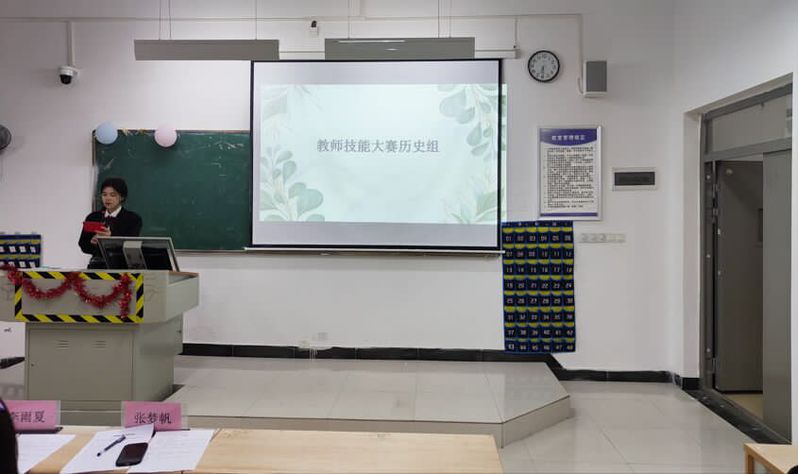 活动伊始,主持人介绍完比赛规则并宣布比赛正式开始。首先是英语组的同学,他们在表达的过程中注意了语音语调,个别教师还加上动作声情并茂。其次是历史组的教学展示,欧阳智欣同学以列宁在《亚洲的觉醒》中的一句话导入课题,并详细清楚的列举出本课需掌握的重点。而汉语言组的崔应岚同学采用模拟课堂的方式,让同学感受到了《你是人间四月天》这篇文章的精妙,而且能够鼓励学生大胆质疑、独立思考。