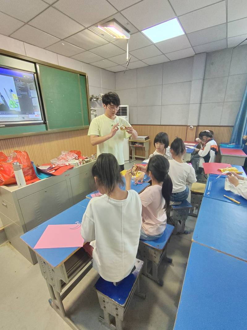 截止6月,助学行活动共举办了八期主题活动。近期最让人印象深刻的活动是第六期、第七期、第八期。第六期的活动主题为“灯笼”,由人文学部青年志愿者协会志愿者汉语言文学2202班赵星云担任授课老师。在课堂中,小赵老师介绍了灯笼的各种形状和美好寓意,然后鼓励同学们发挥自己的想象力折纸制作灯笼,在灯笼的元素上增加许多新奇的元素;第七期的活动主题为“小小设计师”,本次活动由中文2201高雨鑫担任本次主讲老师,课程内容为对衣服进行填色装饰,同学们可以发挥自己的想象力,设计自己喜欢的衣服,实现自己小小设计师梦想;第八期的活动主题为“五月康乃馨,爱心献母亲”,本次由历史2201班的刘子昊担任主讲老师,他教同学们如何用彩泥捏康乃馨,并在包装纸上写下对母亲的感谢语,通过本次活动可以帮助孩子们从小就懂得感恩父母,用感恩的心去面对生活。