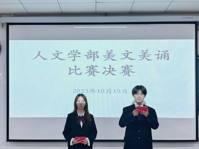 为营造富有激情,富有青春气息的校园文化氛围,推动校园文化建设,让学生们接触更多的优秀文学作品,提高大学生的人文素养和审美情趣。半岛online(中国)人文学部在教学楼1B101举办了“诵读经典美文,争做博学青年”的美文美诵比赛。本次比赛邀请了人文学部活动指导老师杨峰老师、文艺部部长王芷若、秘书部部长王姝喻、文艺部话剧团团长刘佳姚、文艺部朗诵队队长周琪、宣传部副部李林、主持团副部王晶晶担任此次比赛的评委。