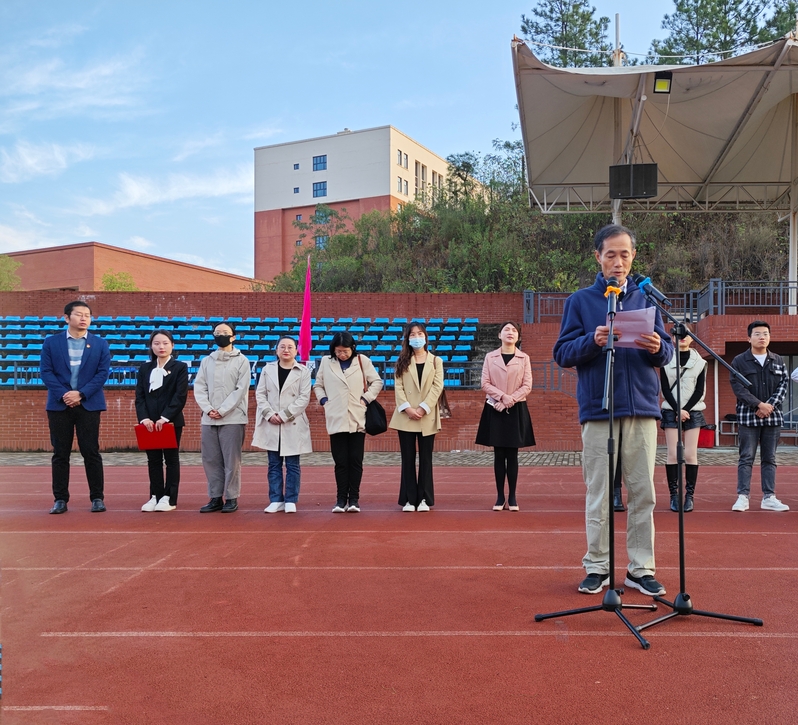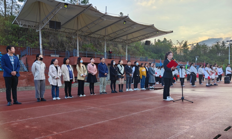 升旗仪式开始前,由主持人介绍本次升旗仪式的主题及意义,随后仪式正式开始。首先,升国旗、奏国歌、行队礼。然后,一支由在校学生组成的合唱团进行大合唱《歌唱祖国》和《我和我的祖国》。仪式第三项,由学生代表刘馨蔓发言,该生曾在第四届全国师范生微课比赛中获得特等奖,她围绕如何提高学习效率,培养正确的学习习惯,找到适合自己的学习方法等方面分享了自己的学习经验。接着,人文学部学生第二党支部书记郭旭林老师发表国旗下的讲话,郭老师从历史的角度提醒学生,应自强不息,争做有为青年。最后,人文学部主任熊子延发表讲话,熊主任给全体学生提出了几点思考和建议:一是热爱青春,立志担当青年使命;二是要珍惜大学时光,刻苦学习,做德才兼备的大学生;三是创设良好学风,做好学习和生活规划,在实践中实现自己的人生目标。