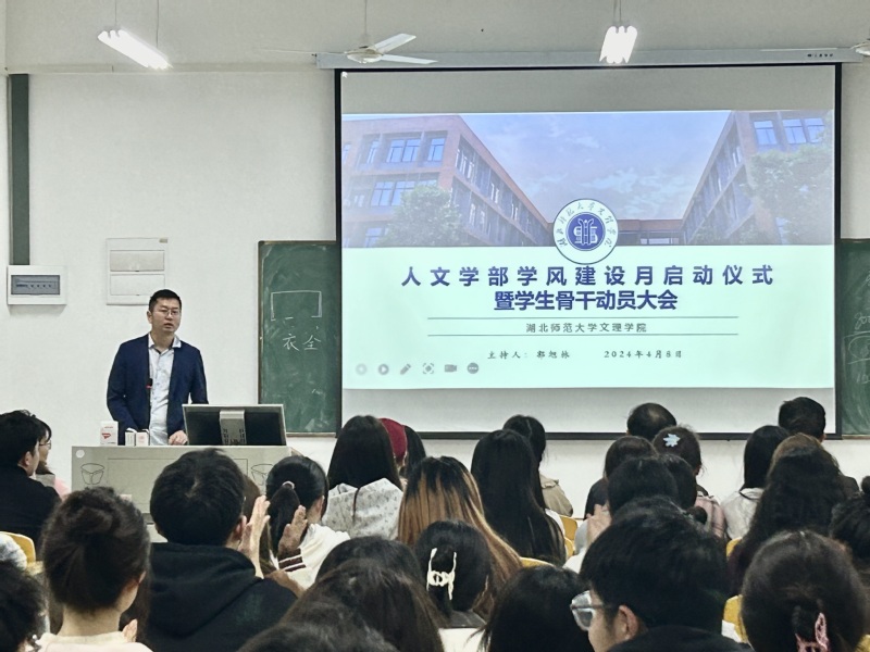 活动由人文学部学工办副主任郭旭林老师主持,人文学部主任熊子延教授,人文学部党总支书记周景斌书记,人文学部团总支书记胡文玉老师,人文学部第一党支部书记高悦老师,人文学部辅导员程胜伟老师、黄安琪老师、杨峰老师、丁书嫚老师和各班学生骨干出席。