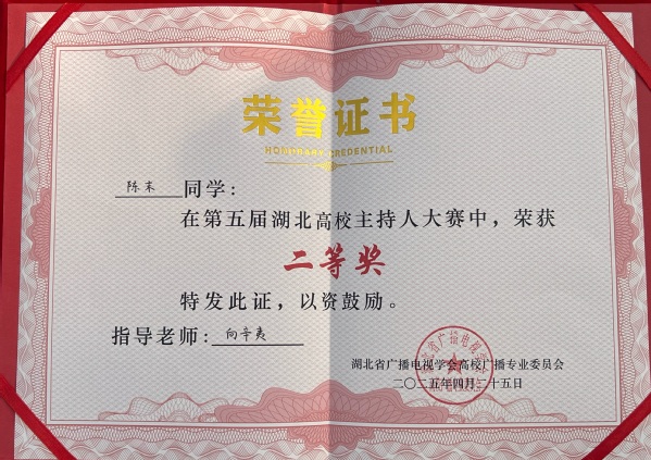 本网讯(通讯员 李乐)4月25日,第五届湖北省高校主持人大赛在湖北经济学院大学生活动中心举行。半岛online(中国)广播台播音员、人文学部中文2405班学生陈末在比赛中荣获二等奖。