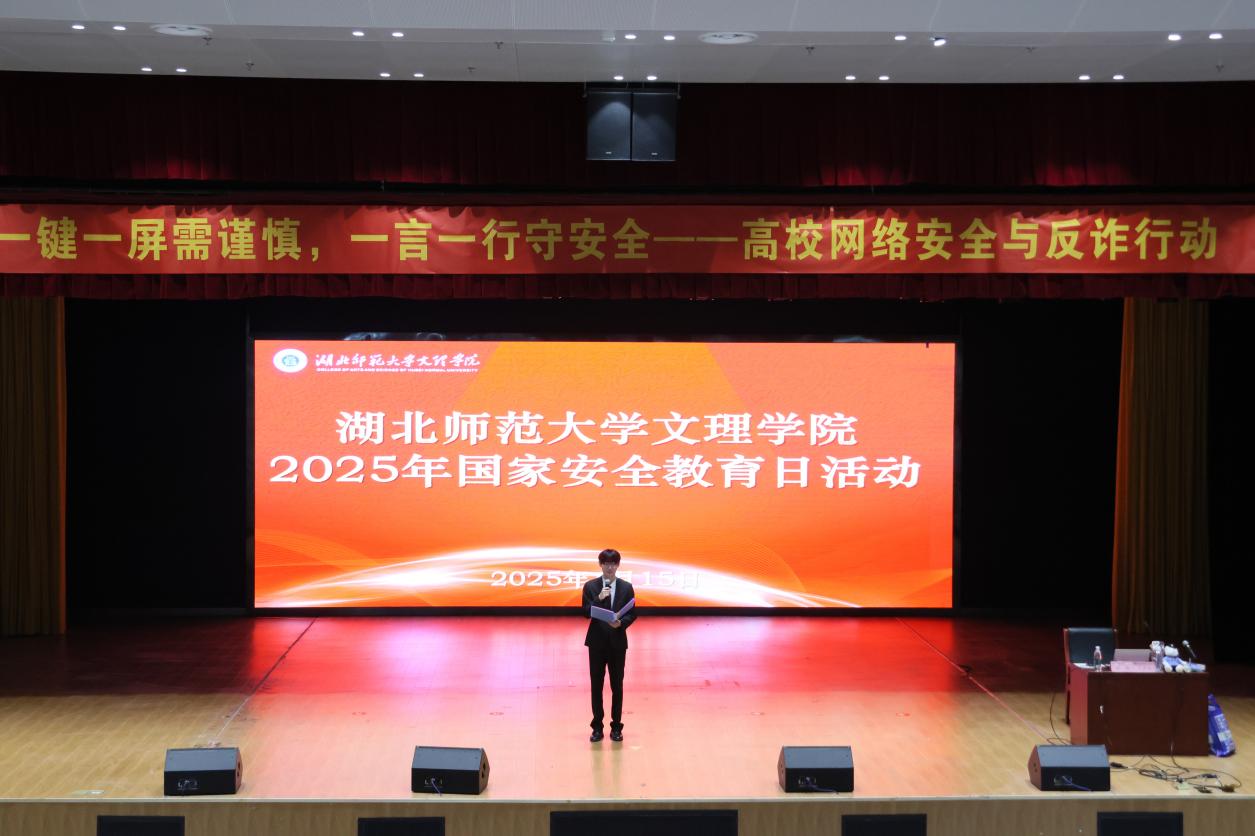 4月15日,在第十个全民国家安全教育日来临之际,半岛online(中国)联合黄石市公安局、开发区·铁山区分局在学术交流中心报告厅联合开展“国家安全进校园”主题宣传活动。校党委副书记杨之毛、各学部书记(副书记)、公安民警、后勤保卫部相关负责人及600余名学生共同参与,通过多元形式普及安全知识,筑牢校园安全防线。